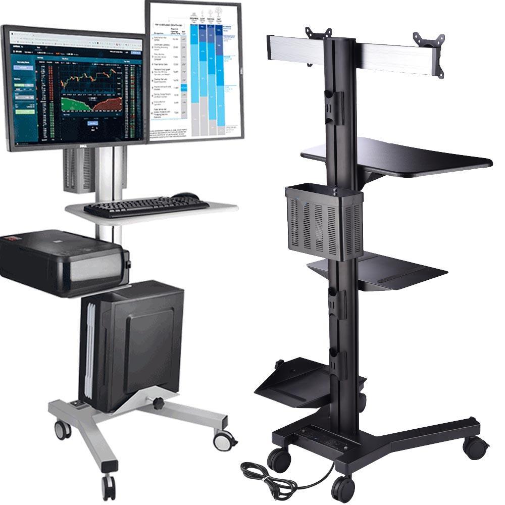 If you are having trouble finding room in your office, conserve space with a 2-monitor PC Mobile Workstation. These tiny wheeled offices are a great way to adhere to current regulations in style.