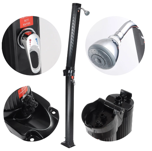 Everyone knows that it is necessary to shower before you get in the pool to wash off excess dirt and sweat but it is also important to shower after pool use to wash off chlorine and other harsh chemicals. Rinse off conveniently with a foldable pool spa shower. The solar powered stand alone shower effectively heats 6.6 gallons of water without the need of an outlet or external power source.