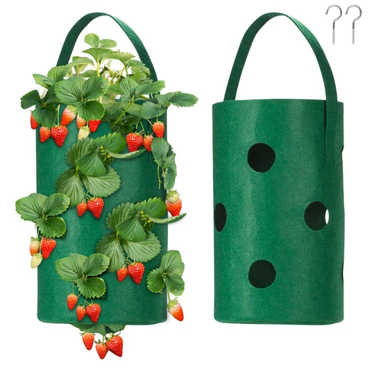 2-Pack Strawberry Grow Bags Hanging Fabric Pots Buy this 2-pack 3.8 Gallon Hanging Garden Plant Grow Bag Fabric Pots that can allow oxygen to deplete the walls of the pot to grow faster and better. Even better, it can prevent many problems associated with over water like root rot. Great for indoor and outdoor planting. Ideal for patios or small gardens, like the balcony, sunroom, and outdoor spaces. It can used to grow variety of plants and vegetables, sugar as potato, carrot, peanut, taro and so on. |