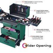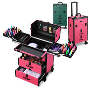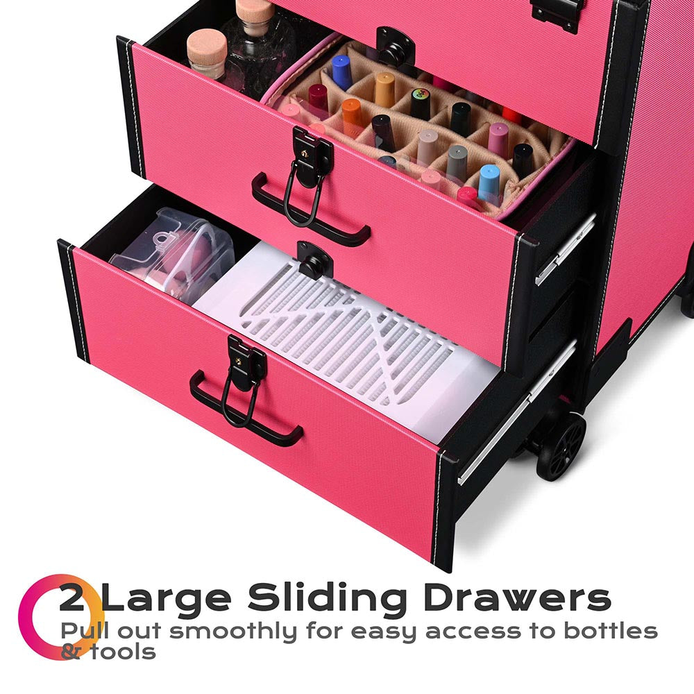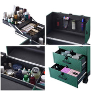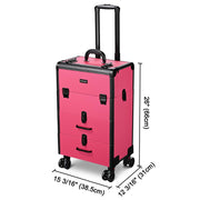15"x12"x26" Yescom Portable Rolling Makeup Train Case features extendable trays and 2 drawers for storing cosmetics and tools in good order, which is ideal for professional makeup artists, nail stylists, freelance beauticians.