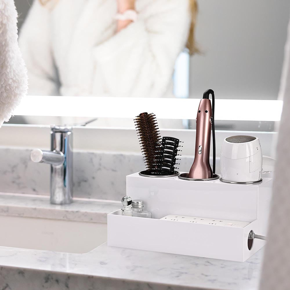 Yescom Bathroom Hair Tool Organizer is the perfect way to keep your blow dryer, straighteners, and other hair tools all in one place. It offers a large capacity which is perfect for maintaining a clutter-free bathroom while its sturdy and water-resistant design makes it a great choice for any bathroom.
