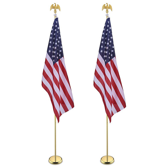 • Gold Pole+Eagle Yescom 8' Indoor Flagpoles with Stand US Flag 2-Pack, Gold Pole+Eagle Image