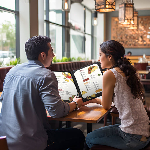 • Book Style 4-View 30ct/pk Yescom 8.5x11 Menu Covers Cafe Restaurant Black, Book Style 4-View 30ct/pk Image