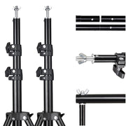 • Aluminum Alloy Construction with 11 Lbs weight capacity for strong support; Each stand comes with 6 spring clamps for holding muslin, canvas, paper firmly on the background stand; 2 sandbags to stabilize the stand