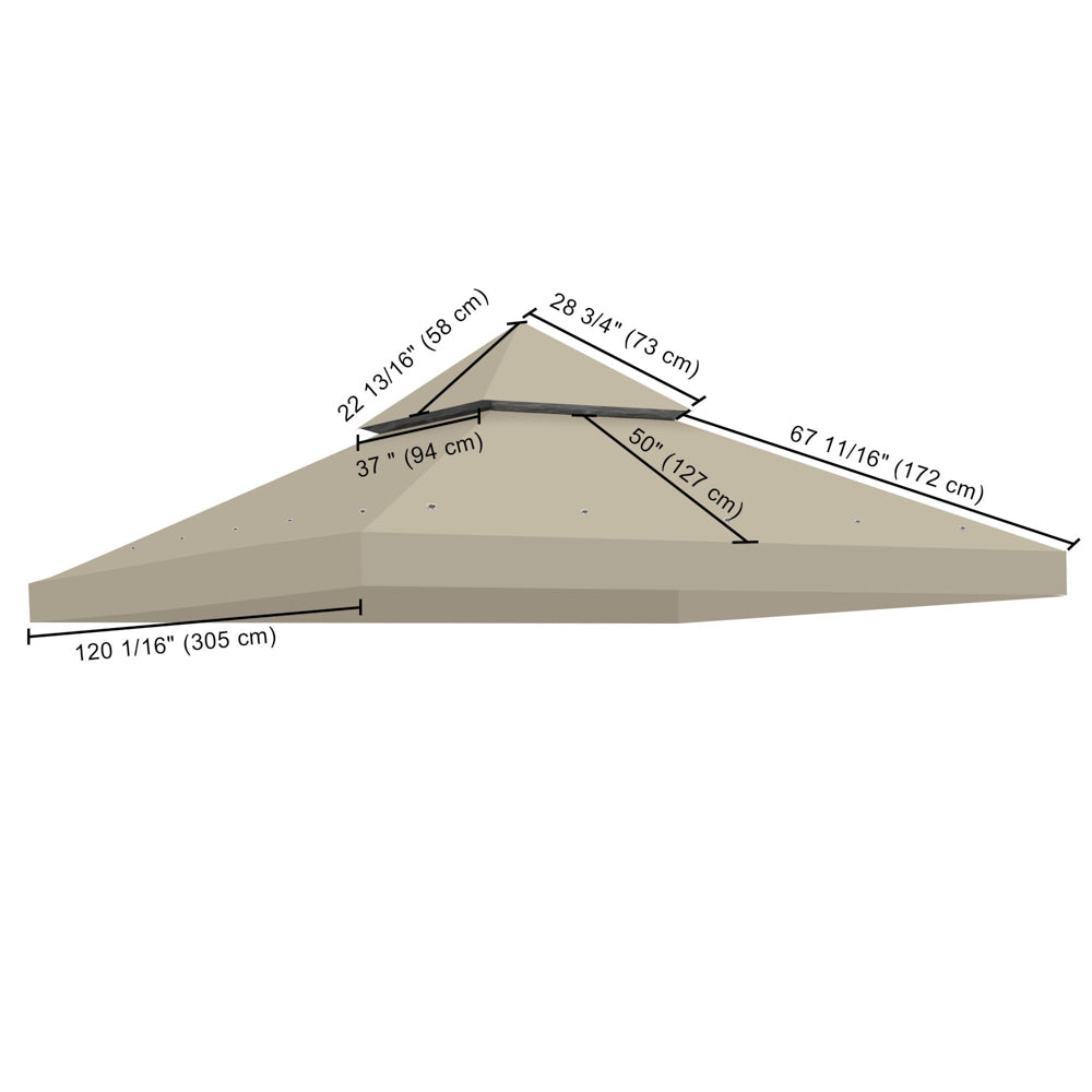 Brand New Waterproof 10' x 10' Dual-tier Gazebo Replacement Canopy Top! Perfects for sunny and rainy day, it lets your enjoy the touch of nature you want from the outdoors with the shelter you need. It will stand a severe test for year round to provide you pleasing and cozy get-together with your family or your friends.