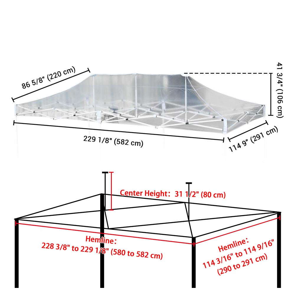 Yescom Clear Waterproof Canopy Replacement Top for Pop Up Canopy with Options in 9.6x9.6, 10x10, 10x20 foot. Features high quality and UV protection which can block up to 95% of the suns UV Rays. Also, Canopy Top Replacement is convenient for you to replace the canopy on frame.