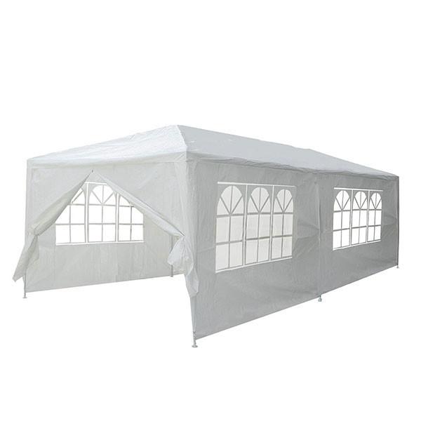 This 10' x 20' Outdoor Party Tent High Quality durable waterproof polyethylene cover and Diam.32/24/18 Steel Tube. It can be conveniently carried and are perfect for many outdoor needs. Ideal for commercial or recreational use - parties, weddings, flea markets, etc. It can also be erected on hard surfaces such as decks, driveways, lawn, etc. This party tent is made for temporary use and not permanent use.