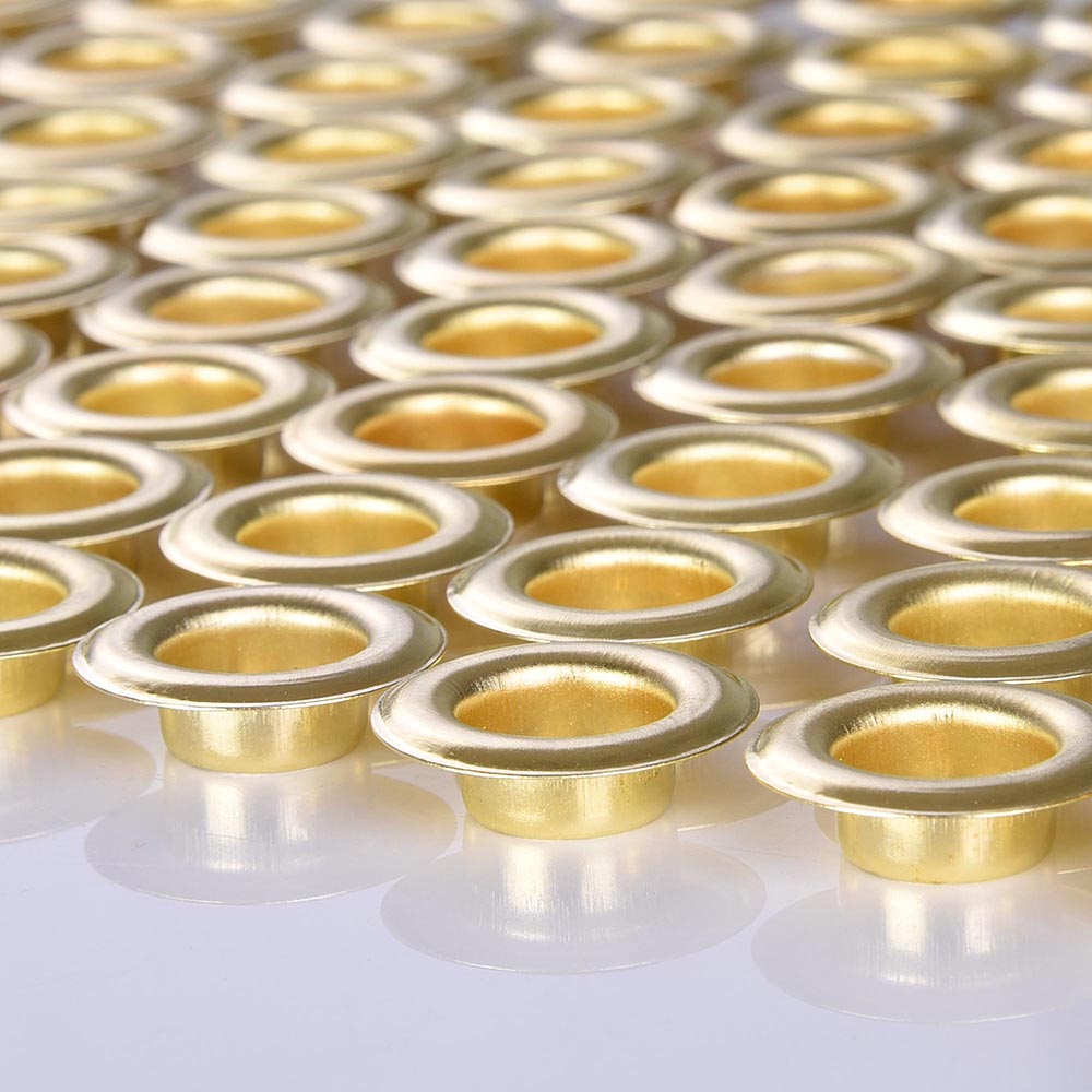 Upgrade to our durable grommets made of iron with rust-resistant brass or nickel! No more pre-punching required, allowing for successful attachment without washers. Compatible with various grommet machines including Yescom semi-automatic, pneumatic, and automatic machines., making your work easier. Order now and experience smooth and effortless grommet installation! Suitable for use on various materials such as leather, canvas, PVC cloth, tarp, denim, and corrugated paper.