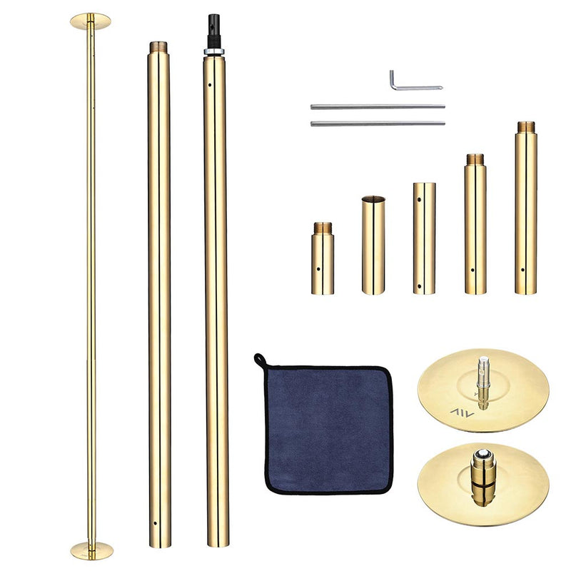 Yescom Dance Fitness Pole features adjustable height to fit for ceiling heights from 7 1/4 to 10 ft, and it is easy to install without any drilling required, suitable for home, club, disco, party, live and other occasions. Dancing pole with golden color that shines in the light, a great gift to dance lover, fitness lover.