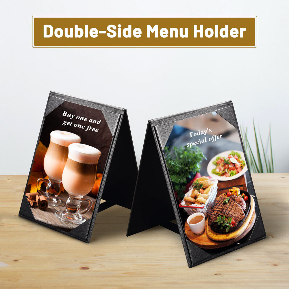 Add a touch of elegance and organization to your business with Yescom set of Double-Sided Menu Holders. The soft touch and exquisite appearance make for a clear display for your daily specials or new product promotions. With a ribbon design for stability and 4 angled pockets for a secure fit, this holder is perfect for cafes, hotels, restaurants, retail stores, and more.