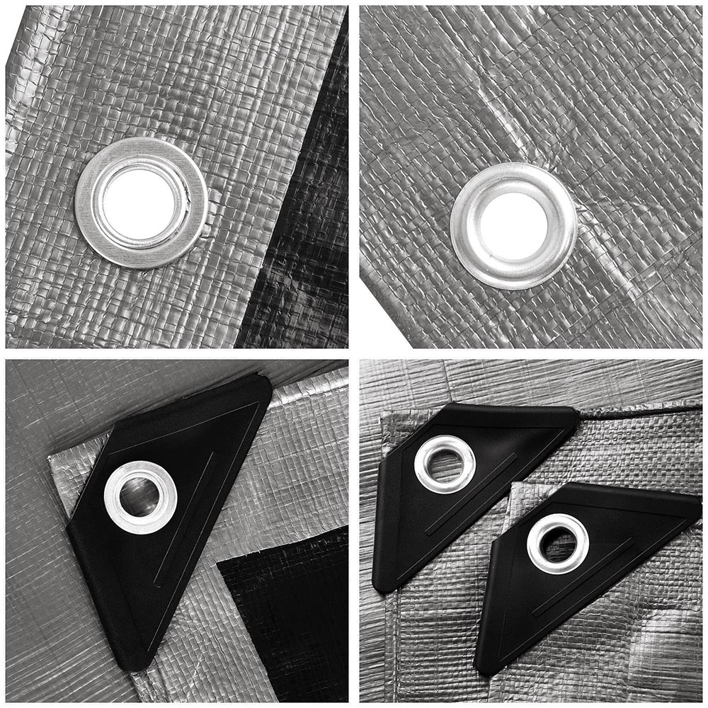Silver/ Black Poly Tarp 10x15 with heat reflective silver coating, High Quality 100% UV protection, Water Proof, Rot Proof & Mildew Resistant. Ideal for general cover tent fly, camping ground sheet, car covers, boat covers, machine covers, wind protectors, privacy walls, picnic mats and pool cover.