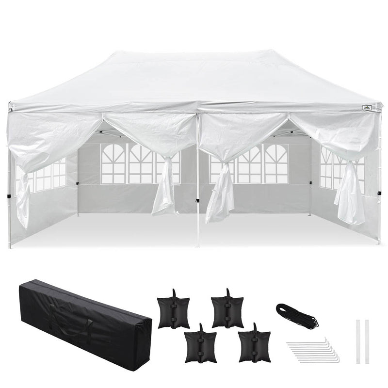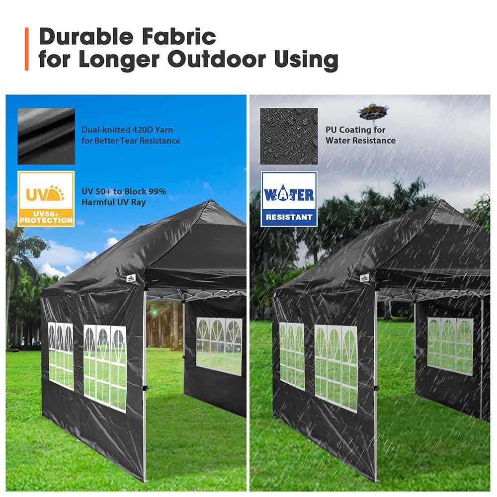 We strongly recommend to use tent stakes & ropes when setting up the 10x20 Pop up Canopy. In this way, the service life of the canopy tent can be greatly enhanced.