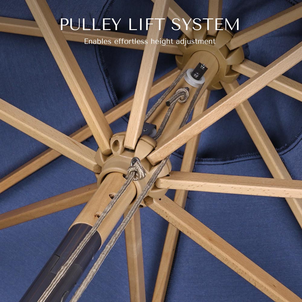 Shade with style! Yescom 9 ft Wood Patio Umbrella offers more than just protection from the sun - it's made with soft-touch and abrasion-resistant acrylic fabric that's UV resistant with UPF50+ and boasts level 5 color fastness. The beech wood pole and ribs add a natural touch to this beautiful, durable umbrella.