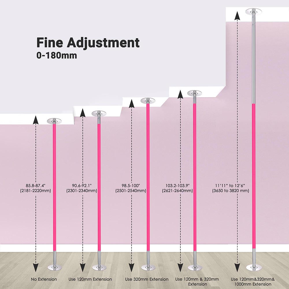 Take your dance routines to the next level with our 12.6 Ft Static Spinning Dancing Pole Kit! With both static and rotating modes, this sturdy steel pole boasts a rose pink silicone surface for extra grip. It offers exceptional durability and a high load capacity, perfect for professional dancers, beginners, and fitness enthusiasts alike. Get ready to spin, twirl, and dance your heart out!