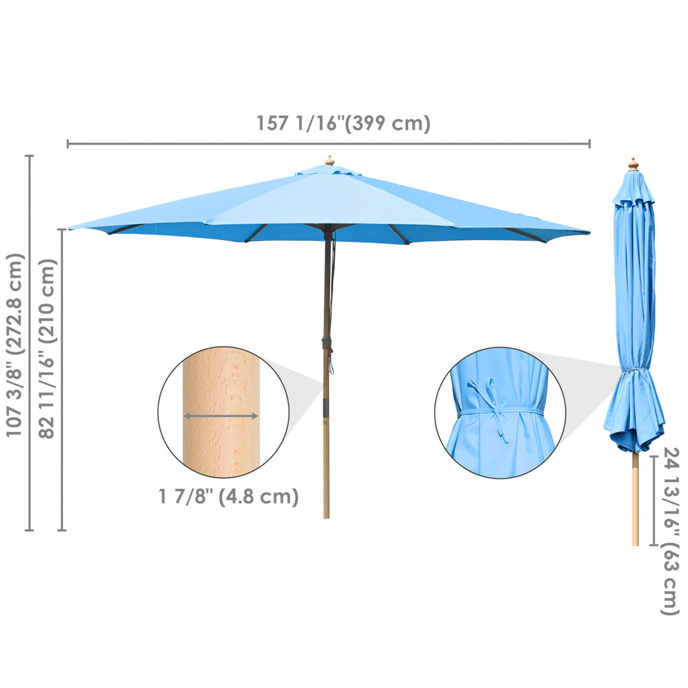 Do you want to drive your life into a corner which far away from hustle and bustle, or just enjoy the leisurely outdoor life, or adorn your romantic moment with more native elements? This 13ft German Beech Wood Umbrella can help you to make your dreams come true. Green trees, gentle breeze, German beech wood texture, all blend into nature to make this wood umbrella perfect for garden, patio, weeding scene, swimming pool, sandy beach, seaside or lakeside.