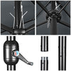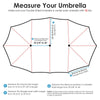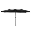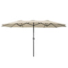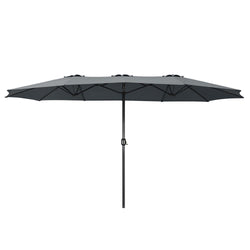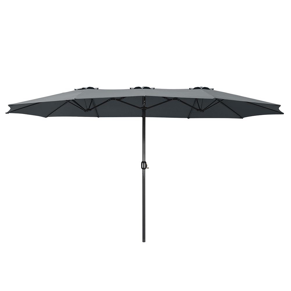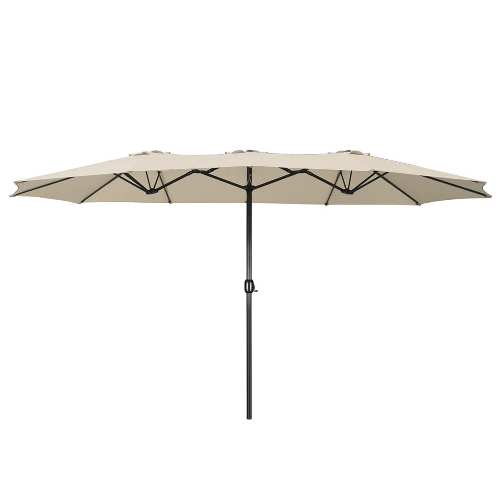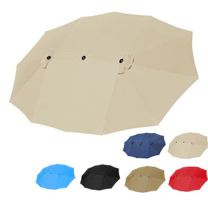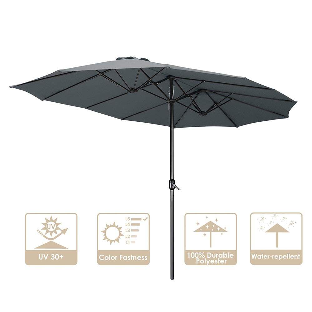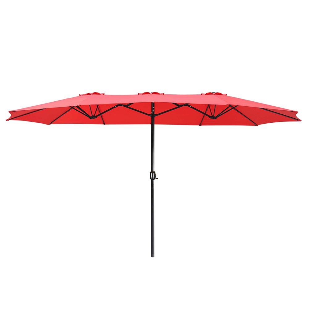 14' 8" x 8' 8" extra-large double-sided patio umbrella provides 127sq.ft coverage with 12 metal ribs support the canopy for stability and durability. Umbrella is perfect for shading yard, garden, patio, beach, cafe, market in the open air; Great for residential and commercial applications.