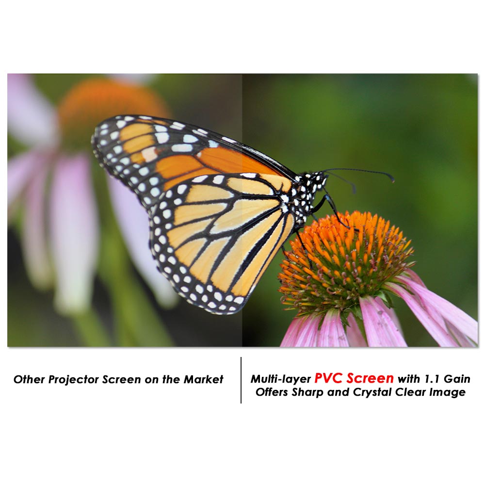• Multi-layer PVC screen with 1.1 gain & 160° wide viewing angle - offers vibrant colors & crystal clear image that will bring the full movie theater experience to your own home