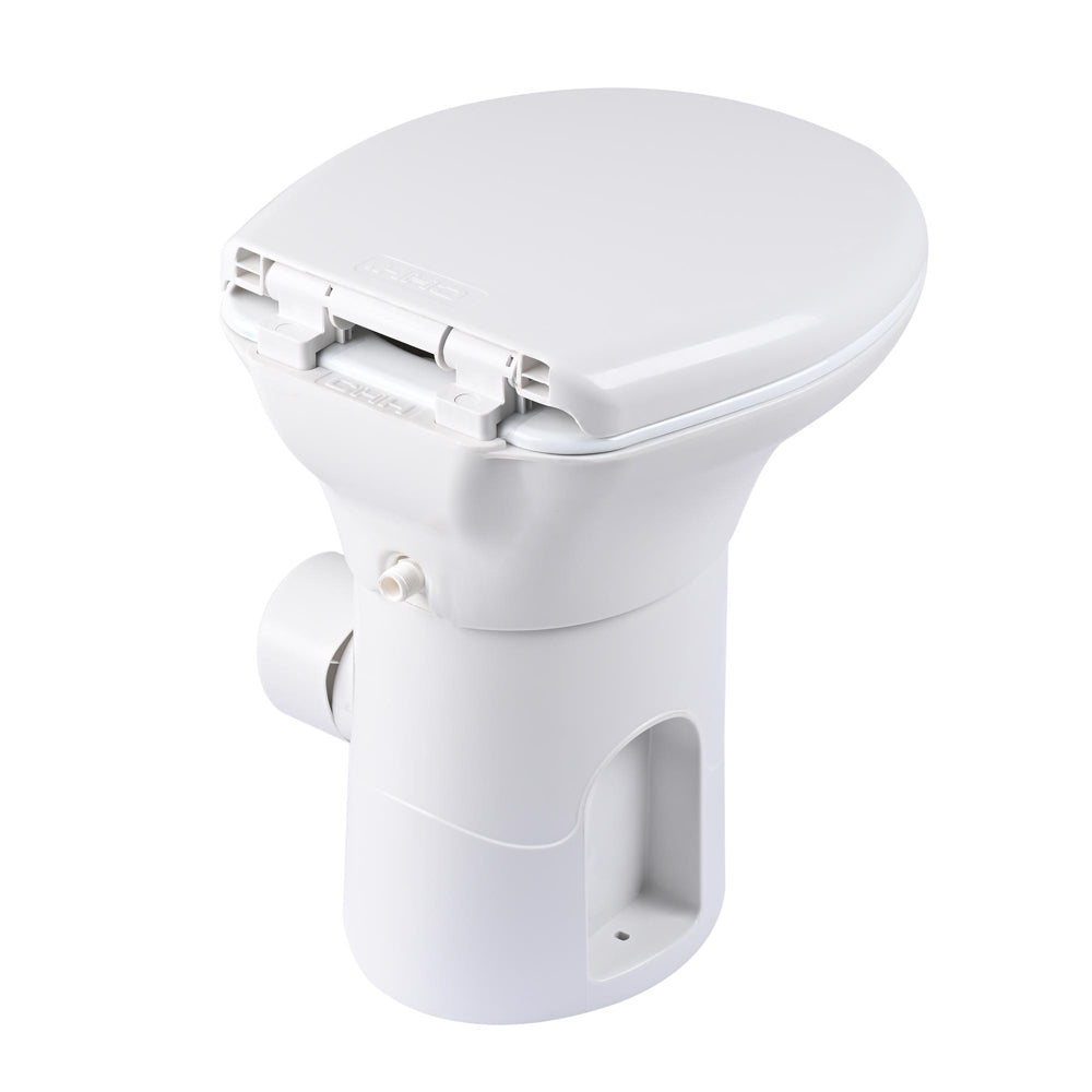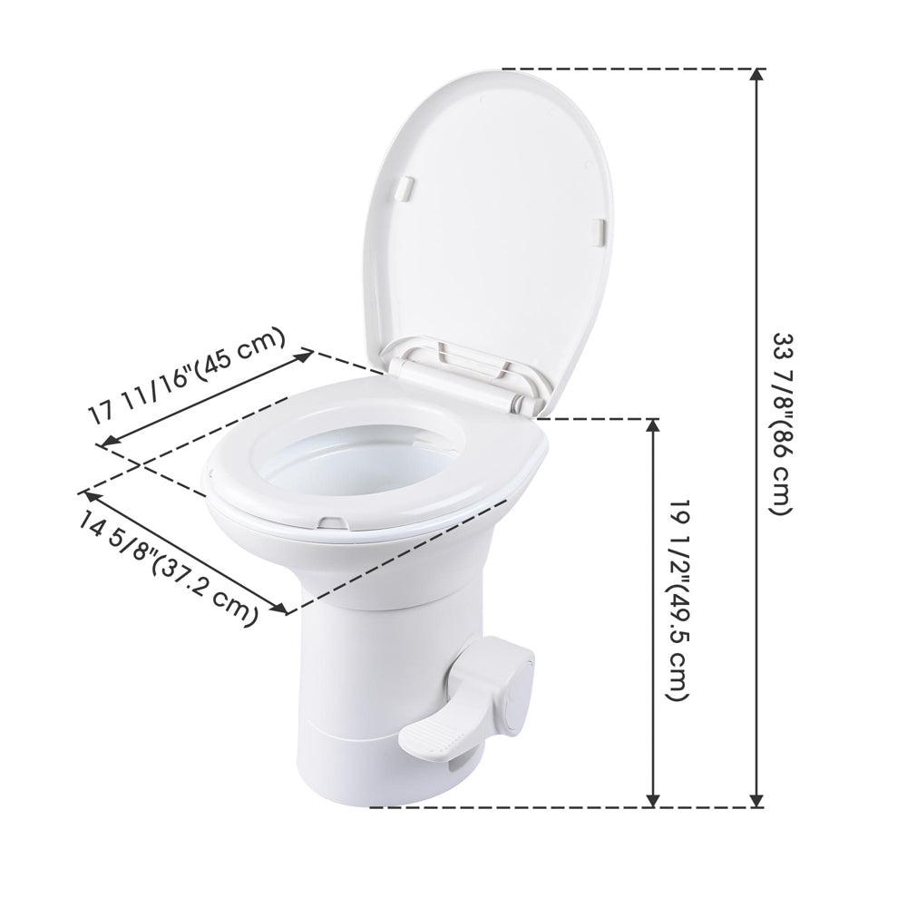 Experience the ultimate in RV bathroom comfort with Yescom Gravity Flush Camper RV Toilet. Made from HDPE for sturdy construction and with a porcelain bowl that resists stains and buildup. Our high-powered two-directional flush nozzles ensure complete waste removal, while the soft-closing seat and lid prevent slamming for a peaceful and odor-free experience. Upgrade your RV bathroom today!