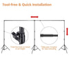 10x20ft Backdrop Stand Kit includes crossbars, tripods, sand bags, clips and carrying bag for supporting live streaming, video shooting, wedding, party and so on. It is easy to carry around owing to detachable design with retractable crossbar and foldable tripods. Tool free installation allows you to easily finish setup in minutes.