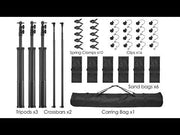 • Crossbar can be adjusted length from 8 1/2 to 20 1/3 ft; Tripods height can be adjusted from 4 to 10 1/3 ft