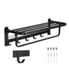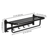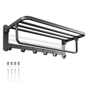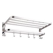 23" Stainless Steel Towel Shelf Rack Holder Wall-Mounted with 6 Hooks is made of 304 stainless steel, ideal for hanging towels and placing clothes.