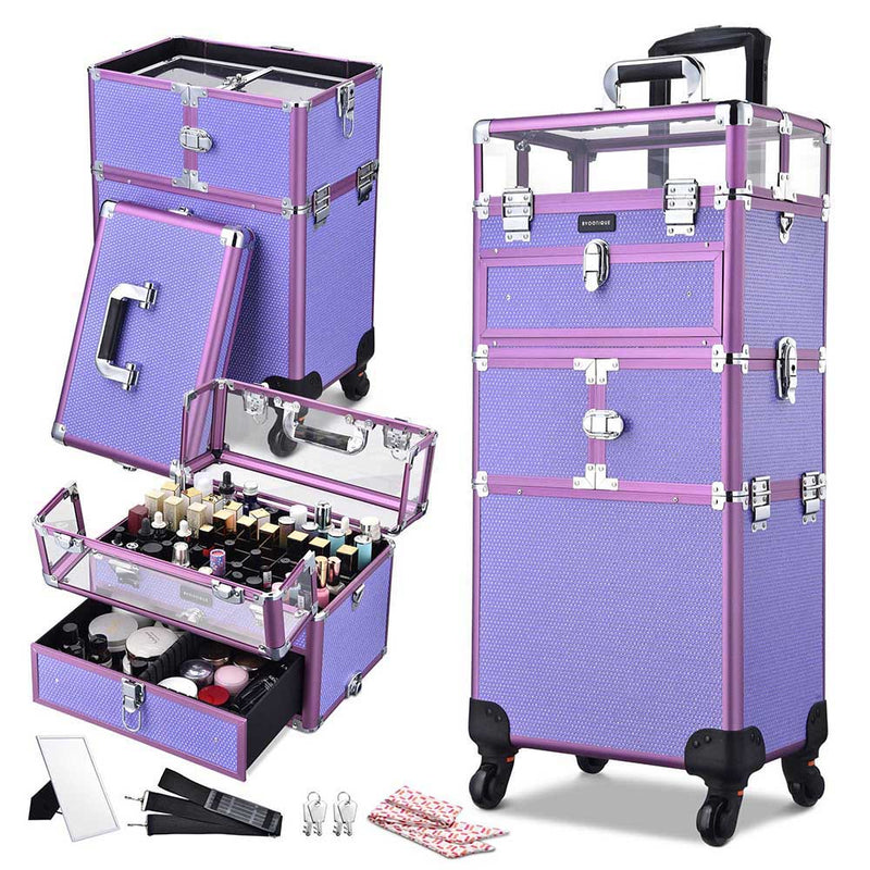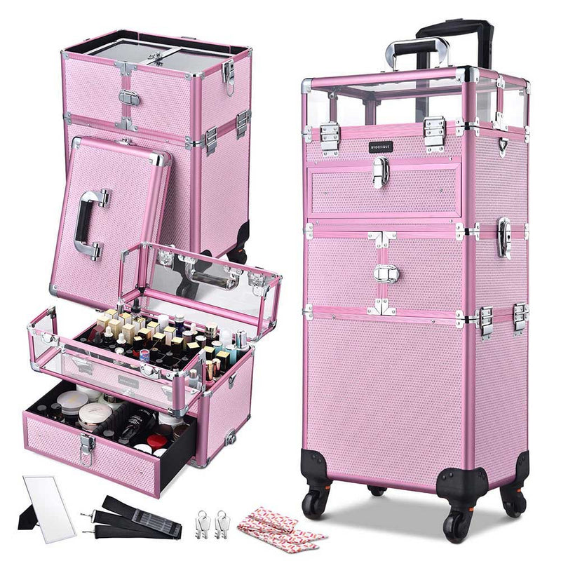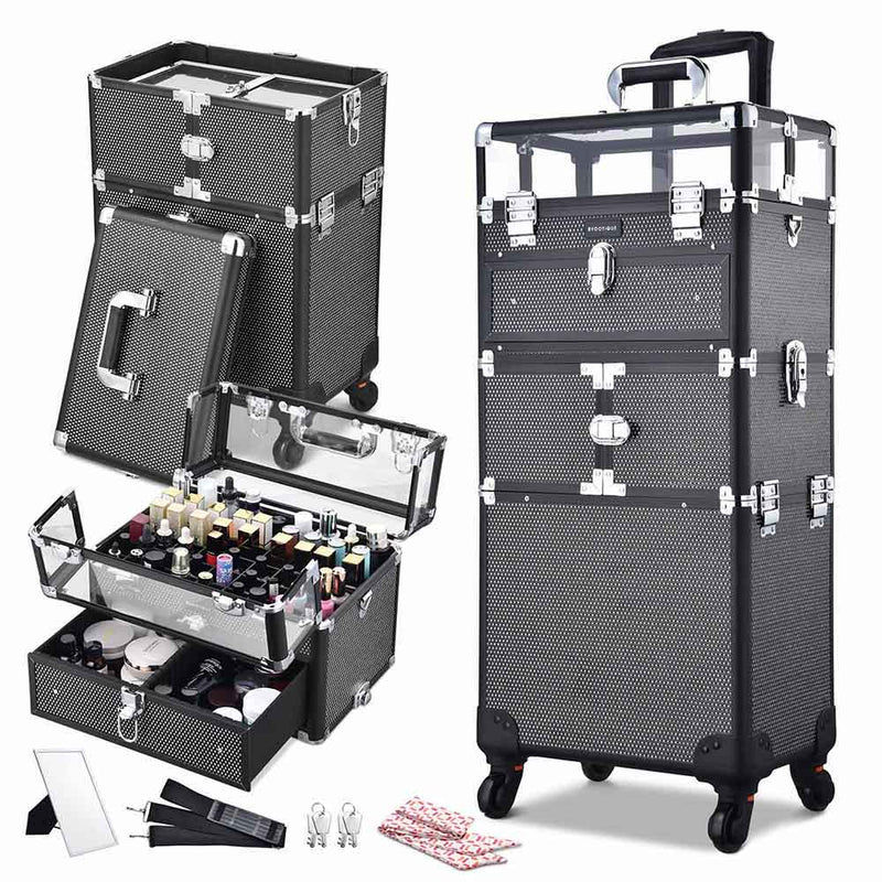 Yescom 2in1 Rolling Makeup Case with nail polish holder features large capacity, 2 in 1 customizable structure, and transparent cover design, which provides an easy way to organize all your versatile nail polishes and makeup tools.