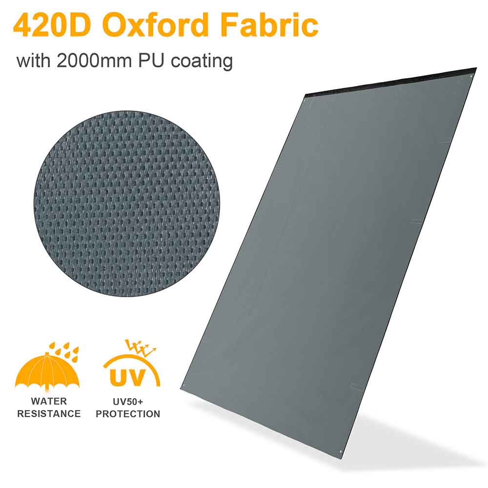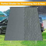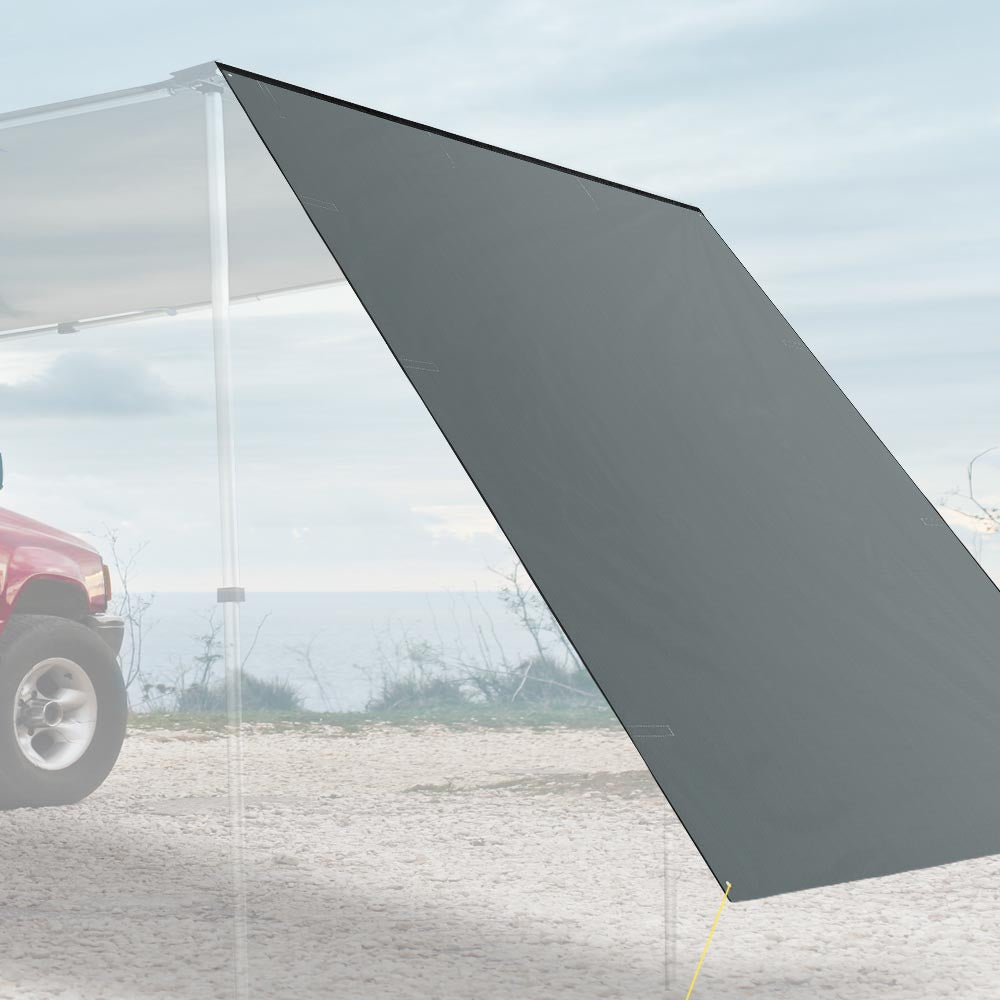 Car side awning sidewall is made of PU-coated 420D oxford fabric for durability, features water resistance, UV50+ protection and 2-way easy installation, which can be attached to the awning in the front or side way for meeting extra shading needs and keeping your rest area cool.