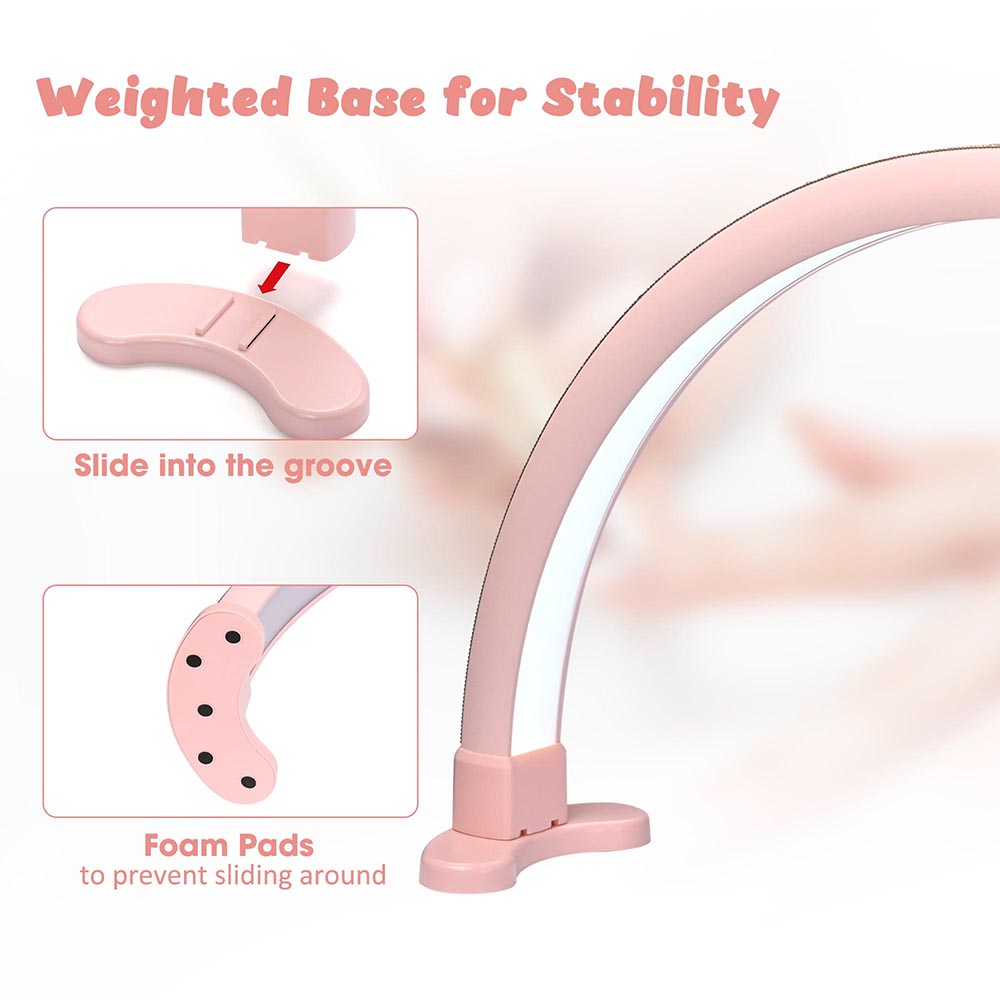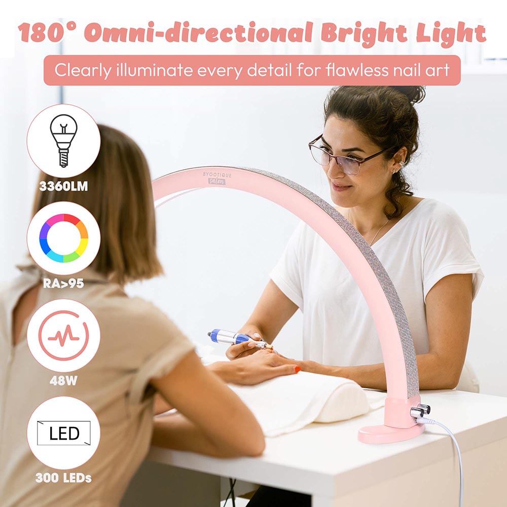 Expertly illuminate your nail care routine with Yescom nail tech light. Featuring a 180-degree lighting source for wider coverage, this pink light is adorned with glittering rhinestones for a touch of glamour. Stepless brightness and color temperature adjustment achieve the perfect lighting for any task. Plus, weighted bases make for easy assembly and added stability.