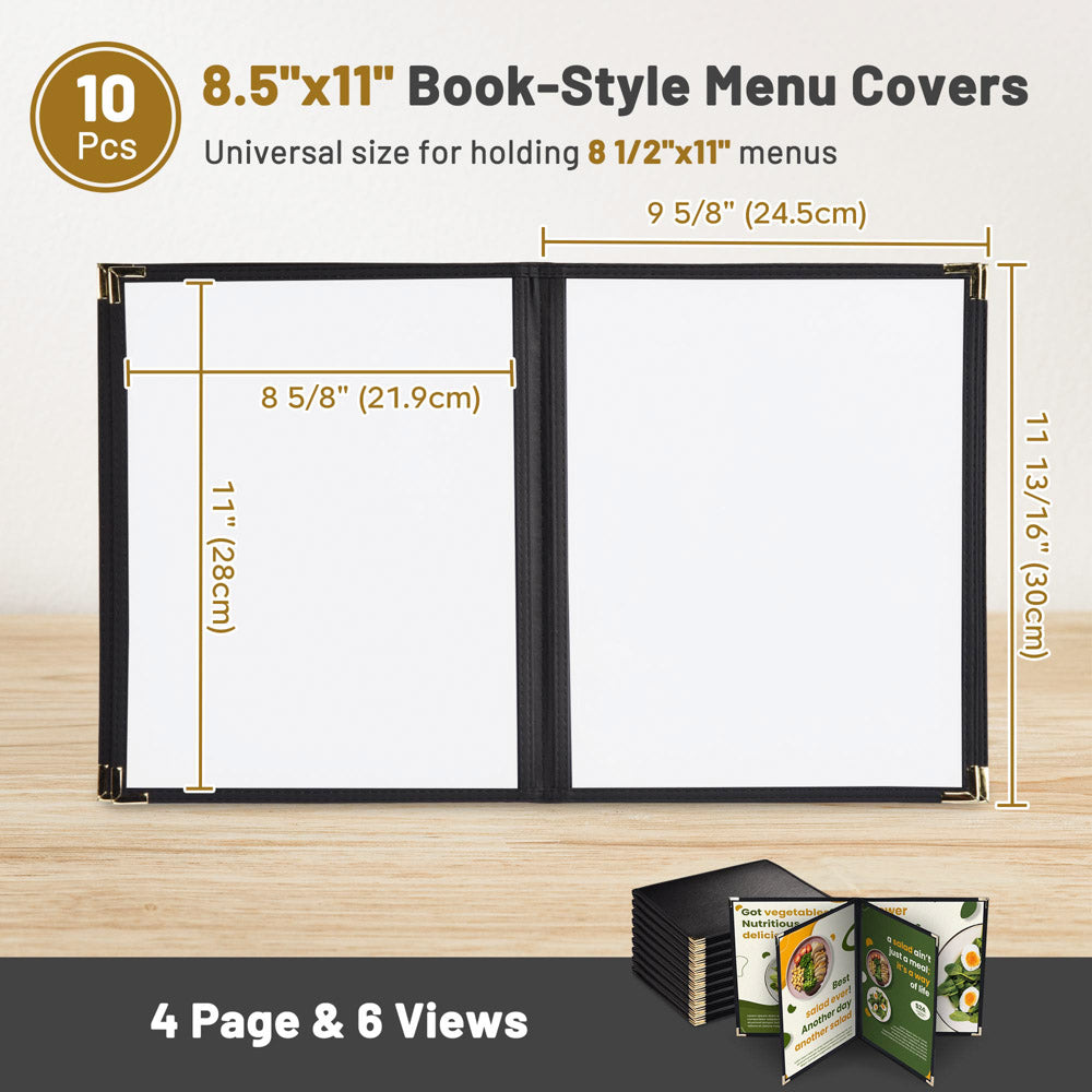 Take your menus to the next level with Yescom 10pcs 11"x8 1/2" menu covers! Made with a high-quality PU leather cover and gold metal decoration on each page, these covers exude a high-end appearance and add a touch of sophistication to your establishment. The PVC inner page provides high transparency, making your menus easy to read and change with the side sliding design.