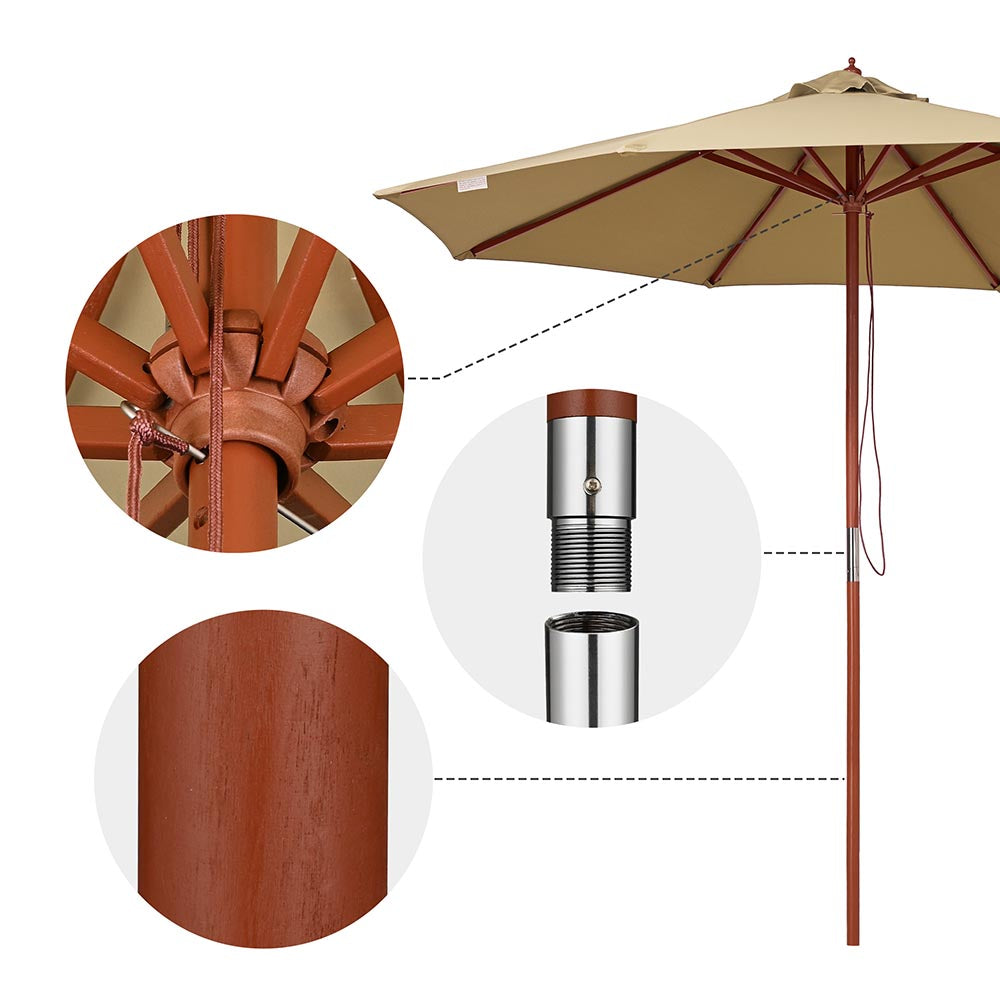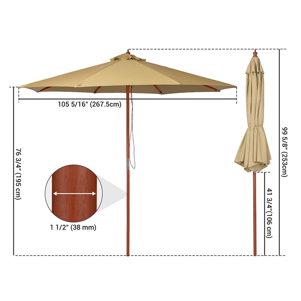 • Tan Yescom 9ft Patio Wood Market Umbrella Multiple Colors, Tan Image