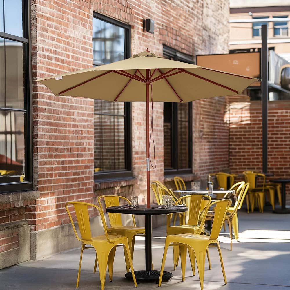 • Naples FL Yellow Yescom 9ft Patio Wood Market Umbrella Multiple Colors, Beige Image