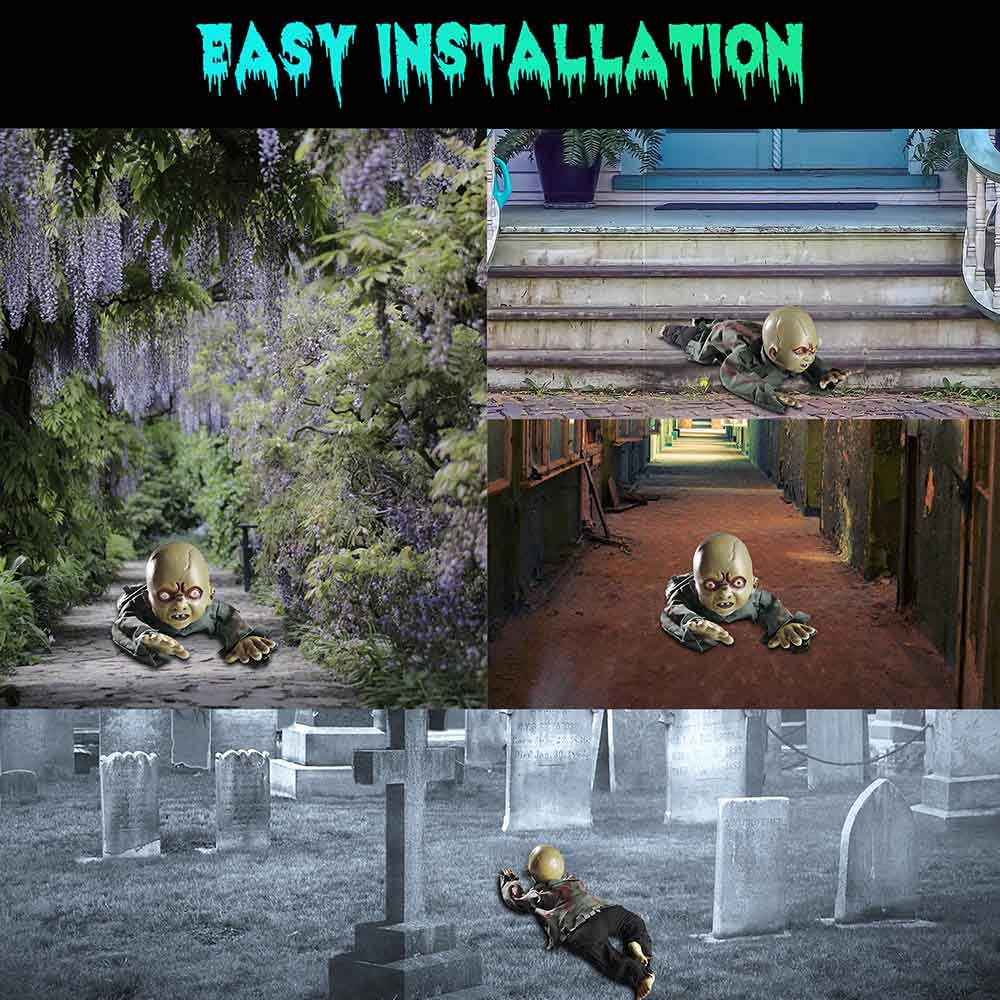 Crawling Baby Zombie Scary Ghost Baby Doll for Halloween decor can abruptly scare people into screaming triggered by sound & touch control.