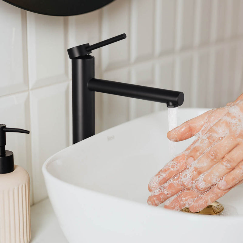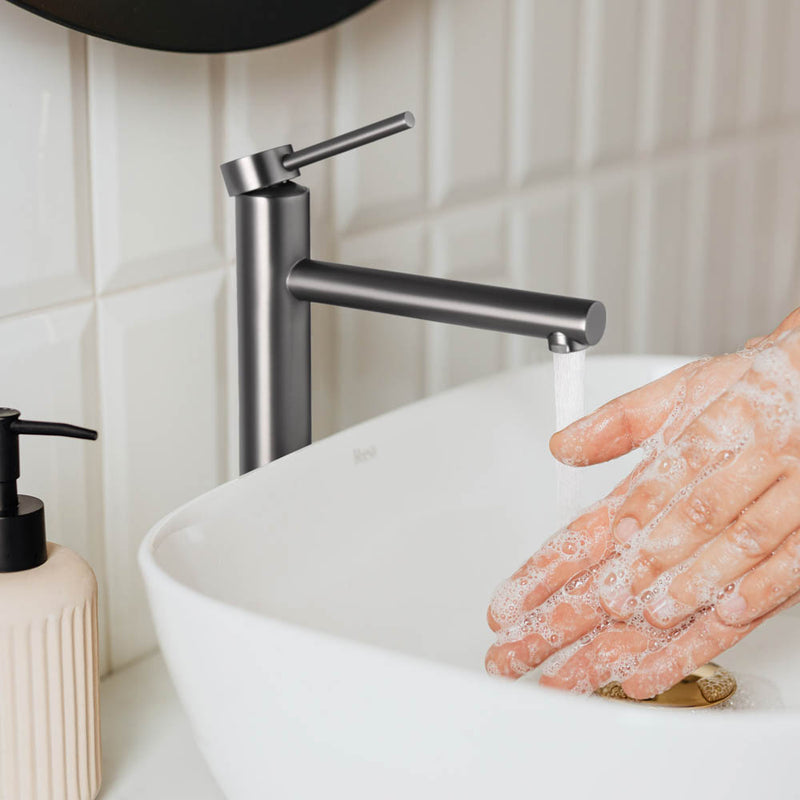 Aquaterior 13 inch Bathroom Vessel Sink Faucet Vanity Faucet, constructed by solid brass with excellent corrosion resistance, features lead-free material for water safety and single handle for easy adjustment of water flow and temperature, enhancing the overall style of your bathroom.