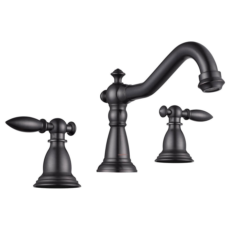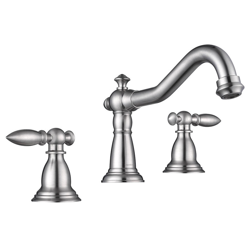 Aquaterior French Country 3 hole bathroom faucet, matches different types of undermount & wall mounted sink; special artistic long spout design, fits for larger sink of your bathroom, to create a vintage atmosphere