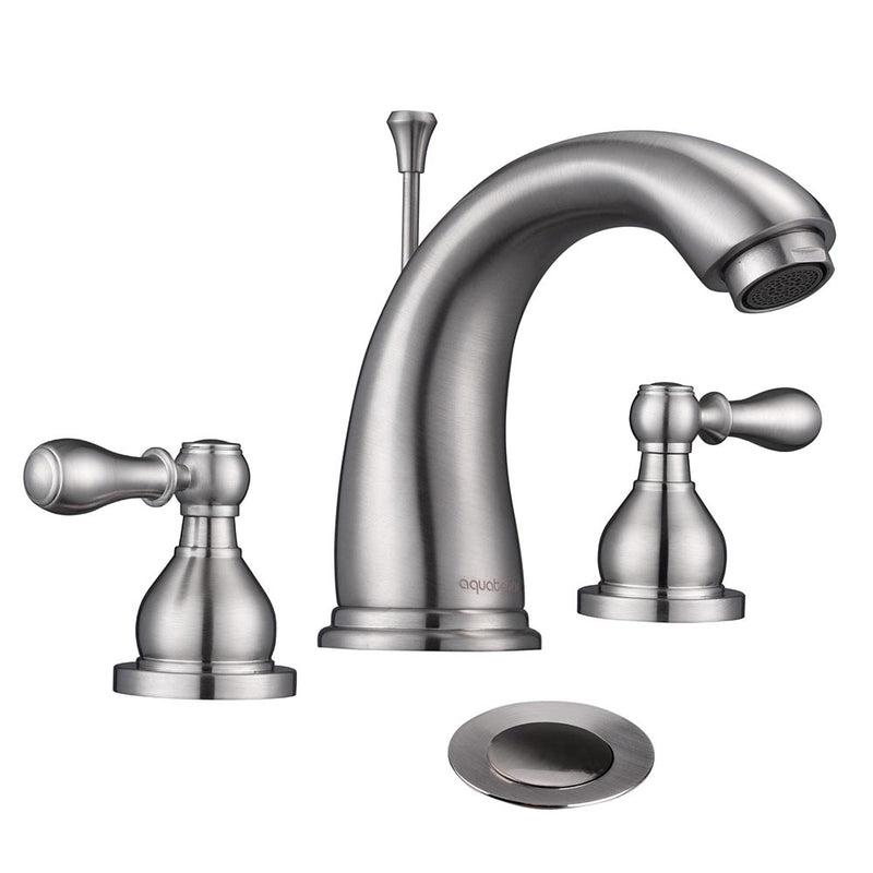 Aquaterior Widespread 3 Hole Sink Faucet brings timeless elegance to your bathroom, with its classic long spout design. A vintage style fixture for a traditional look, made with durable brass for long-lasting use.