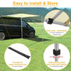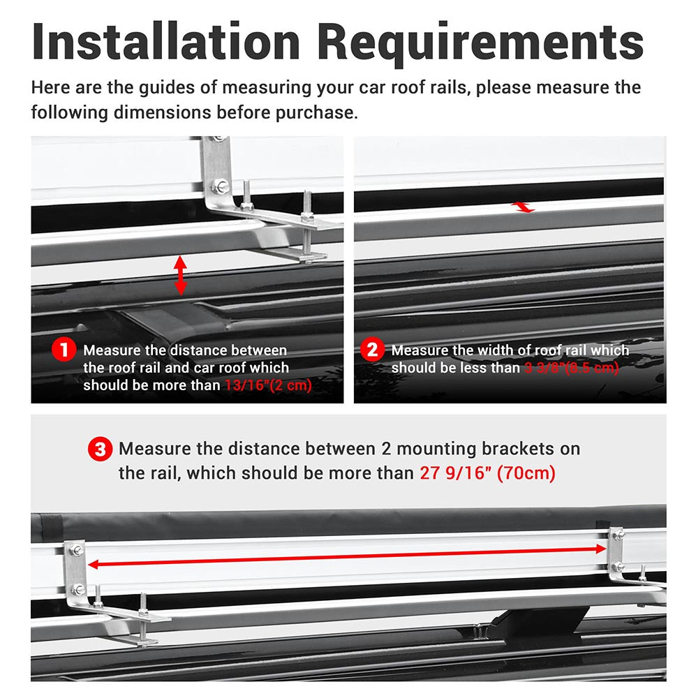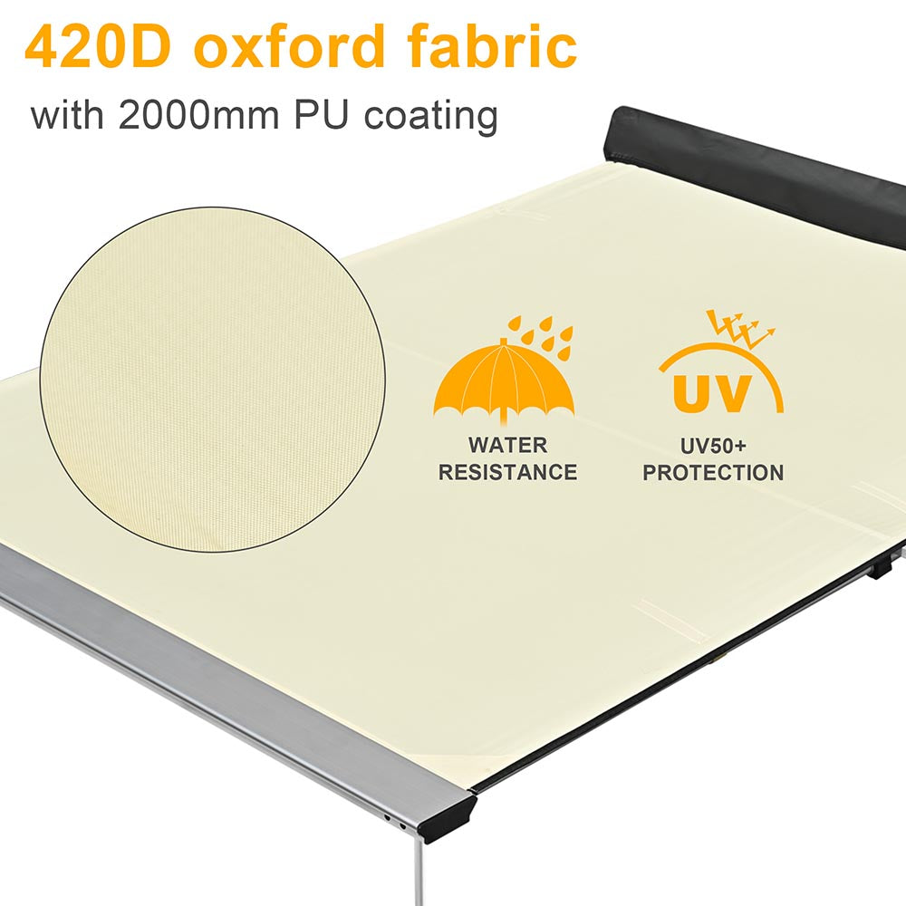 Our 6 7/12 x 4 7/12 ft car side awning with LED light bar fits for most automobile with roof rack. The awning made of 420D oxford fabric with 2000mm PU coating works as a shelter, providing 30 sq.ft cover to prevent sun and rain. 14w LED light bar with 1500 lumen provides bright illumination at night.