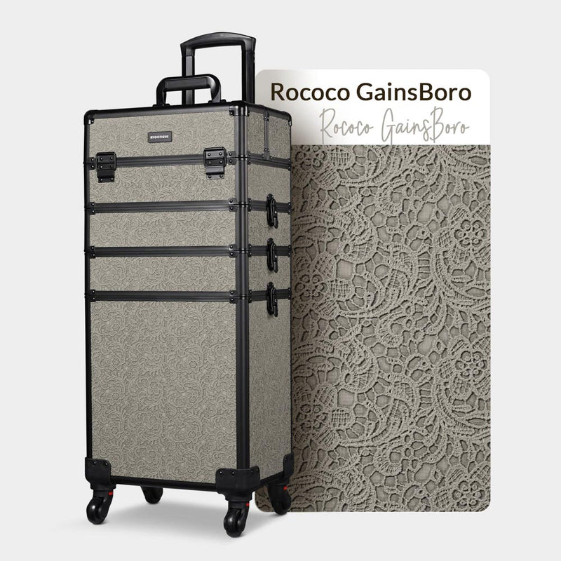 Rococo Makeup Train Case boasts an exotic and ornate design. Featuring elaborate floral relief patterns and scrollwork across the surface, this case has a distinctly opulent, antique-inspired aesthetic. The modular design allows the 4 individual components to be freely combined, suiting your changing storage needs. Meanwhile, the smooth 360-degree swivel wheels allow effortless mobility.