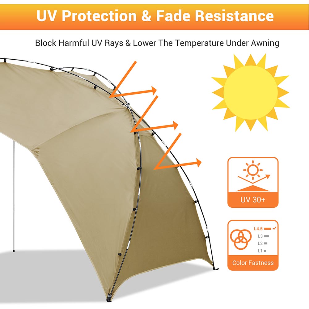 Yescom Detachable Tailgating Canopy with Sidewall is designed for fixing on car wheels and it is made of Oxford fabric for providing PU2000mm water resistance & UV30+ protection. It offers a shade for SUVs, RVs, trucks, vans and MPVs for camping, sports events, car travel, party, etc.
