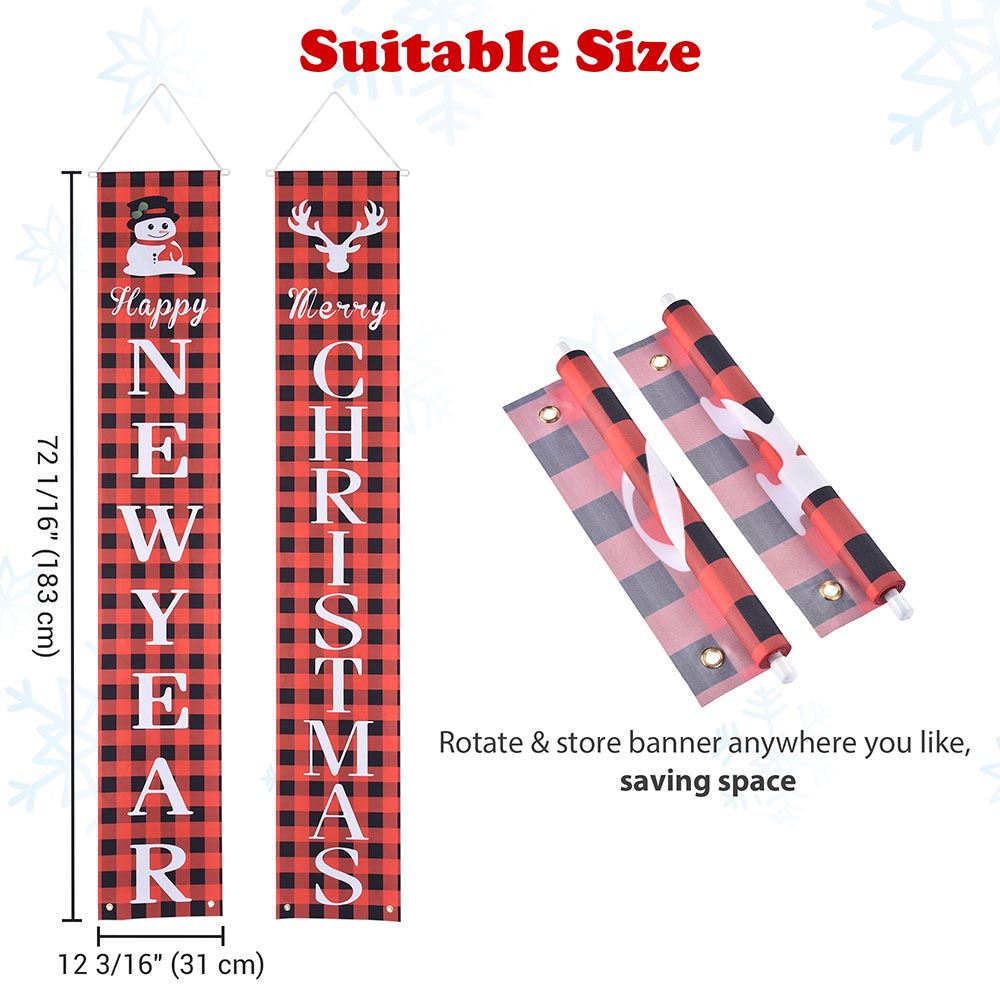 2 pcs Merry Christmas Porch Signs feature snowman and reindeer elements to decorate front doors, fireplaces, garden and impress your friends and neighbors. It is equipped with a rope at the top for easy hanging and 2 holes at the bottom for attaching weights to keep the banner stable. Perfect Size to fit your door or entryway; You can simply rotate the banner and store it anywhere after use.
