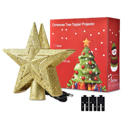 Christmas Tree Topper with Projector Snowflake or Star Tree Topper features 3D hollow glittered design, 360° rotatable projector lamp and 3 easy-to-use films to create magical dynamic patterns of Christmas Santa, snowflakes & stars. Beautifully packaged in a gift box which is a perfect Christmas gift for your friends and family to help ignite your holiday with magic effect.