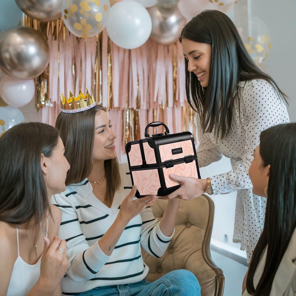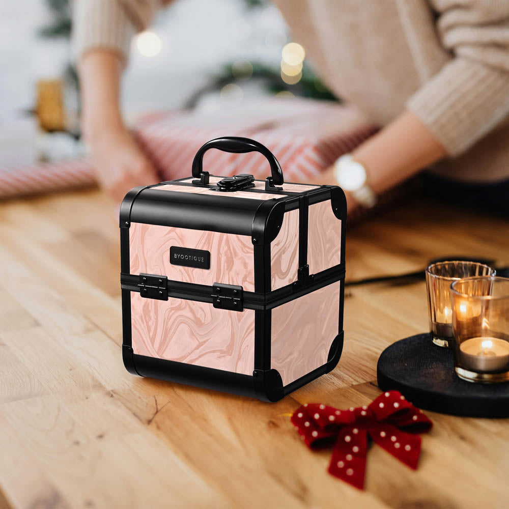 Organize and transport your make-up effortlessly with Byootique CoyoteButtes Cosmetic Case with mirror. Its liquid marbling texture adds a soft and dreamy feel. With 2 extendable trays and a built-in mirror, this compact case makes it easy to access and apply your makeup on the go. It's also perfect as a sleek and stylish gift for friends.