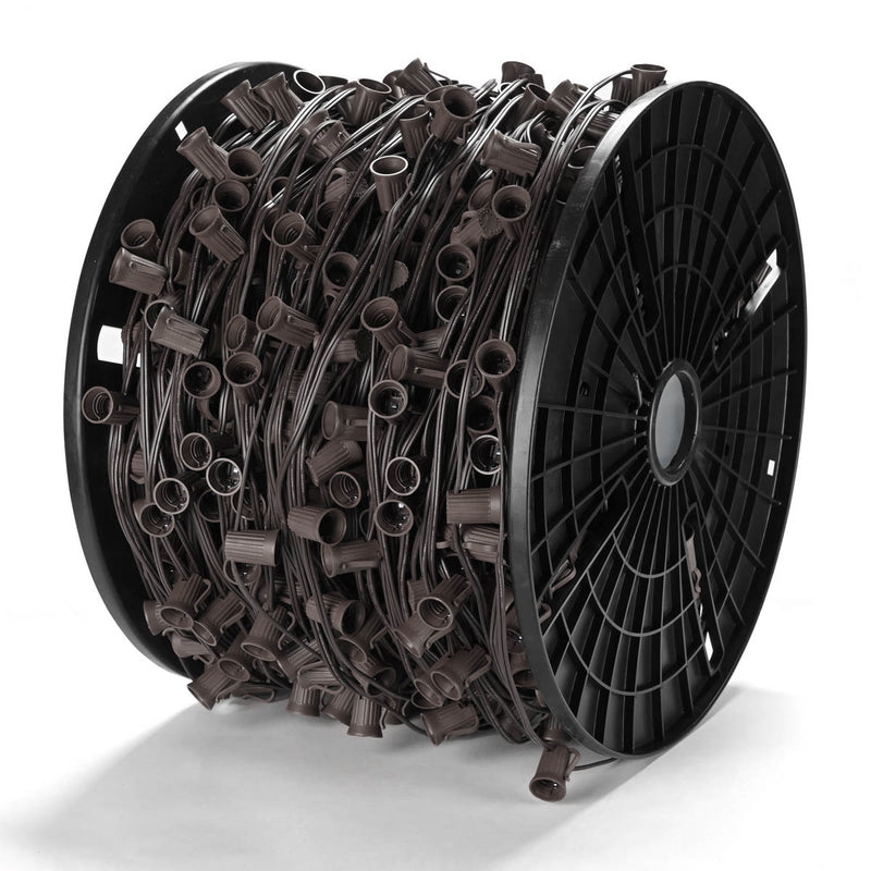Unleash your grandest holiday visions with our Commercial Grade C9 Light Socket Spools. Designed for professionals, this customizable lighting solution offers cut-to-fit flexibility for effortless installation on any scale. Available in 250ft, 500ft, and 1000ft spools with your choice of brown or green wire, it’s the perfect foundation for creating dazzling, long-lasting displays for shopping malls, storefronts, festivals, and more. (Bulbs sold separately).