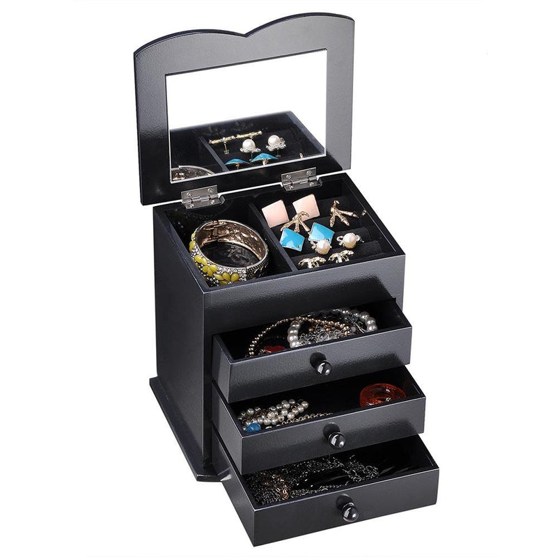 Yescom Jewelry Organizer Box with Mirror is great for organizing rings, earrings, necklaces, bracelet, etc. It has 3 pull-out drawers and top layer to classify and store different items without mess & dust.