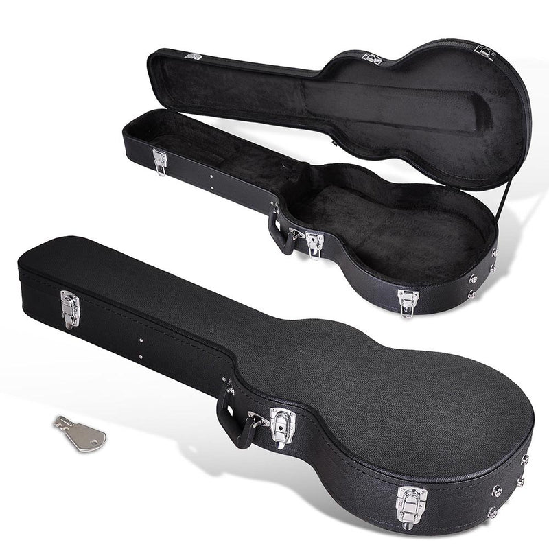 Yescom Lockable Les Paul Style LP Electric Guitar Wood Hard-Shell Case fits Les Paul Style electric guitars, with sturdy wood construction for strong support and durability. PU surface & inner foam padding with soft plush interior. Bumpers on the bottom for added protection and stability.