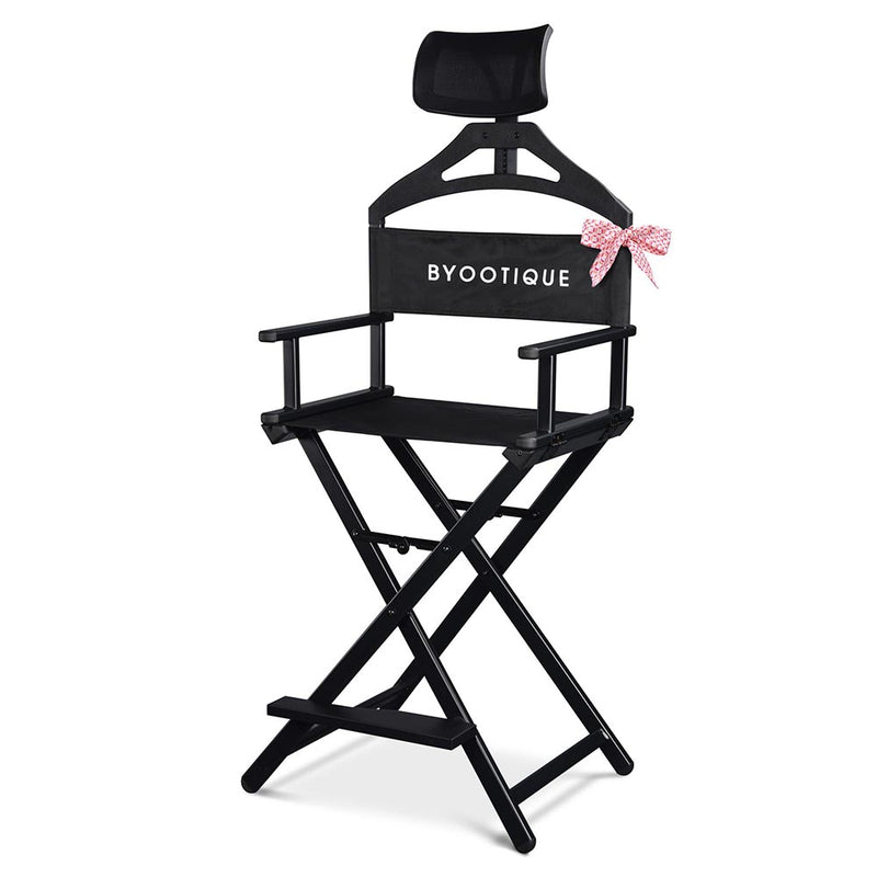 Enhance the comfort with the Byootique Tall Director Chair Makeup Artist Chair! With its ergonomic design, this chair takes care of your back and provides full support for your neck, shoulders, and feet. Its sturdy aluminum frame and X-shaped structure make it stable and sturdy, while also being foldable for easy carrying. Perfect for makeup artists, mobile mua and hairstylists for weddings, mobile salons and events.