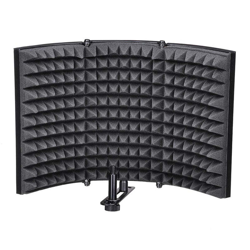 Yescom Microphone Studio Isolation Shield Sound Isolator Absorber High Quality 13" x 9 7/16" x 1 3/4" 3-panel construction helps to block unwanted acoustic reflections or noises and achieve a more crisp and clean sound. It's ideal to mount on the microphone floor stand or table stand.