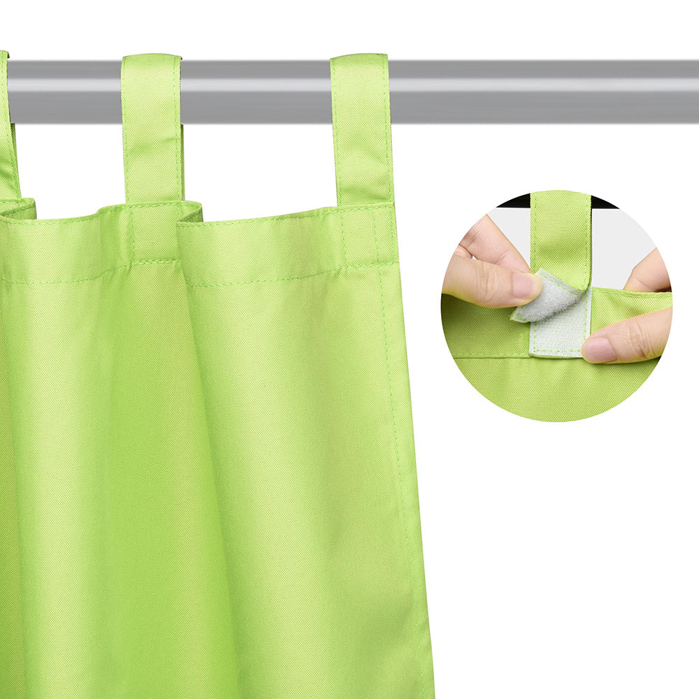 Our 2ct/pack 96 x 54 inch Outdoor Tab Top Curtain has Brown/ Grey/ Bachelor Button/ Green Glow options can choose from, it made from polyester, just the right amount of light to brighten up your room while still offering privacy, and it can decorate your Patio, window, door and closet well.
