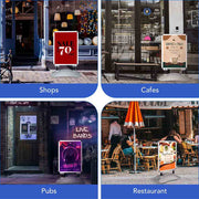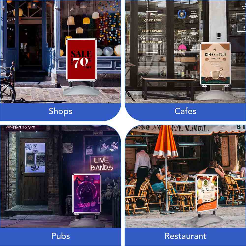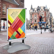 Yescom Pavement Sign Holds 2 sides 23-5/8"x33-1/2" Poster with Rolling Water-Fill Base. The base can be filled with water or sand for increased stability, also can withstand 5 stage wind force. It High Quality built-in wheels allow for easy repositioning, even when the base is filled. Ideal for shops, cafes, pubs, retail stores, markets, restaurants, and more.