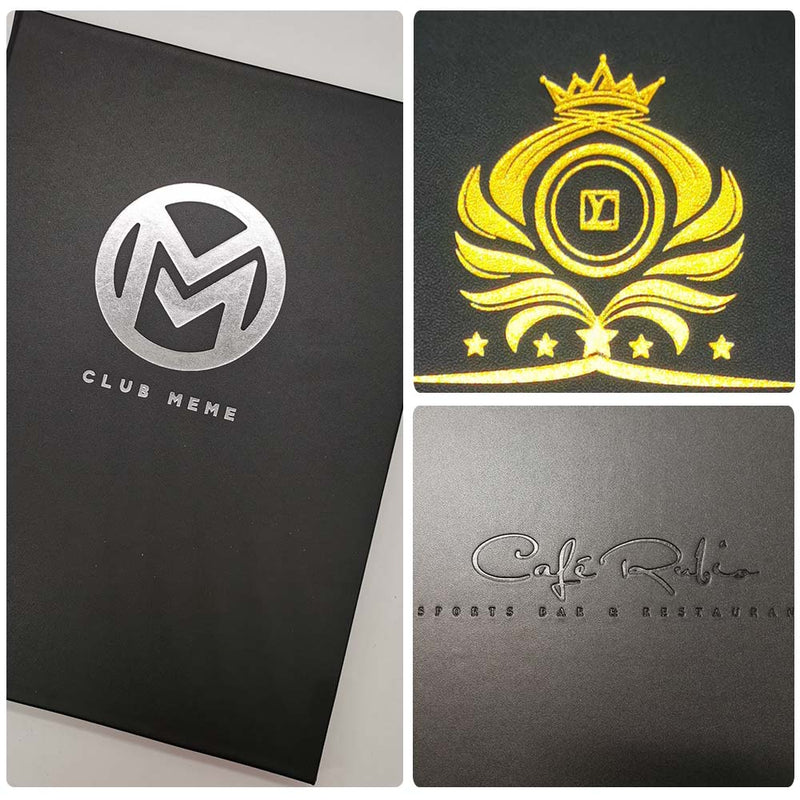 Yescom provides menu cover logo customization services. Current pricing includes DHL shipping & the cost of the custom logo with a 5-piece minimum order. Logo Printing services include UV Printing, Embossing, Foil stamping. Please note: We currently don't design logos, patterns, or text, but we're happy to customize your existing design. For best results, provide a vector file with a transparent background. For more information, please contact us at sales@yescomusa.com. Thank you very much.