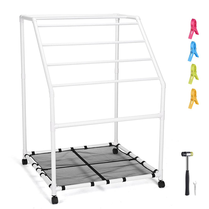 Conquer the chaos of pool towels with Yescom 7-tier towel rack! Made from heavy-duty 2mm PVC, it's stable and built to last. Keep different-sized towels organized well with 7 crossbars and 4 towel clips. Plus, its large sturdy base provides plenty of storage space for multiple pool toys, making organizing as easy as a breeze for any poolside setting.